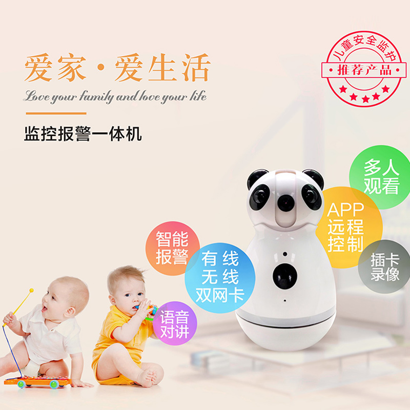 立体监控无死角 全方位云台控制,360度全景捕获,大视野,想看哪里就看哪里。 有线无线双网卡 内置TCP/IP+WiFi模块,自由选择。 双向语音 沟通零距离 全向麦克风,拾音范围广,有效过滤杂音,清晰通话。 720P高清画质 画面真实 采用100万像素感光元件,为您呈现1280*720P高清画质。 高清红外夜视 智能切换 夜间光线不足,红外灯自动开启,呈现清晰黑白画面。 智能移动侦测报警 监控范围内出现异常移动物体,实时推送警情息。 内存卡循环录像 TF卡插卡录像,不错过任何一个精彩瞬间,支…